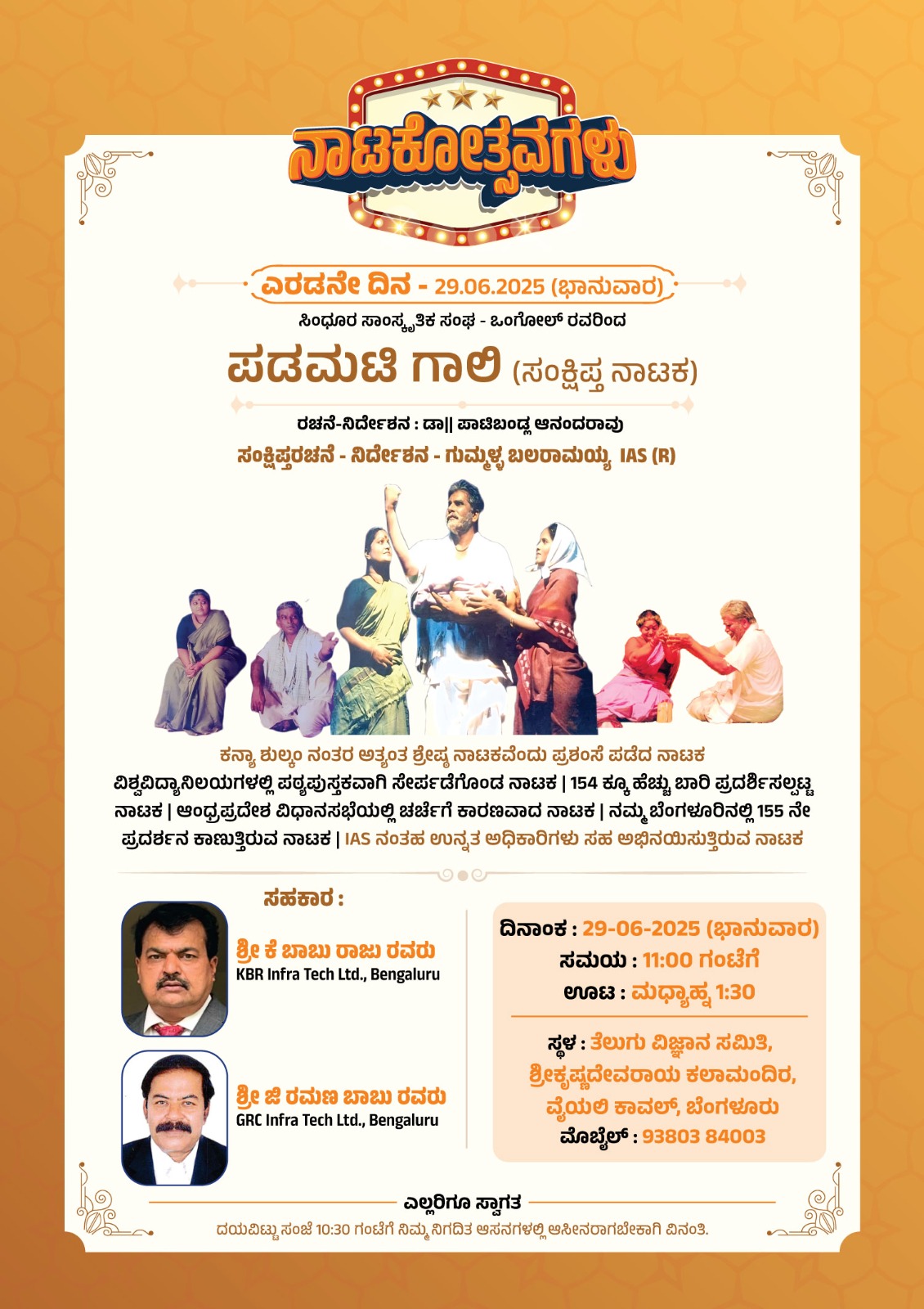 సమితి ప్రతి సంవత్సరము స్వతంత్ర దినోత్సవము,గణతంత్ర దినోత్సవములతో పాటు కర్ణాటకాంద్ర అవతరణ ఉత్స్తవం ఆచరిస్తోంది. ఆ సందర్భంలో కర్ణాటకాంద్ర సార్వభౌముడు శ్రీ కృష్ణదేవరాయల పేరు మీద ,నాటక రత్న శ్రీ గుబ్బి వీర అన్న గారి స్మారకంగా తెలుగు ,కన్నడ కళాకారులను సాహిత్య వేత్తలను సత్కరించి బహుమతీ ప్రదానం చేస్తోంది.